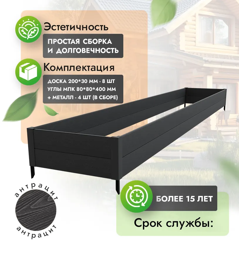 • Комплект грядок ДПК прослужит минимум 15 лет даже в самых агрессивных условиях.